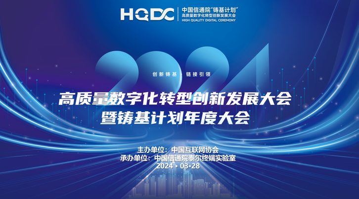 为更好地解决上述问题,中国信息通信研究院联合中国互联网协会 (以下简称“中国信通院” )于 2021 年底正式发起“铸基计划-高质量数字化转型行动”。为深度展示“铸基计划”2023 年度在数字化转型领域的工作成果,并全面展望 2024 年的数字化转型发展趋势,由中国信通院泰尔终端实验室特别支持的 2024 高质量数字化转型创新发展大会暨铸基计划年度会议将于 2024 年 3 月 28 日在京召开。