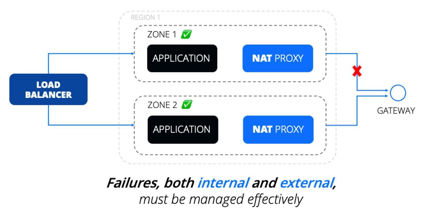 针对这种情况,解决方案包括将依赖系统的健康状态通过就绪或存活探针反馈给负载均衡器,或采用基于代理的重路由机制将流量导向正常的可用区。这需要有效管理内外部故障,以应对应用停机。