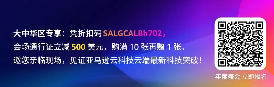 亚马逊云科技 re:Invent 2025 大中华区专享:凭折扣码 SALGCALBh702,会场通行证立减 500 美元,购满 10 张再赠 1 张。