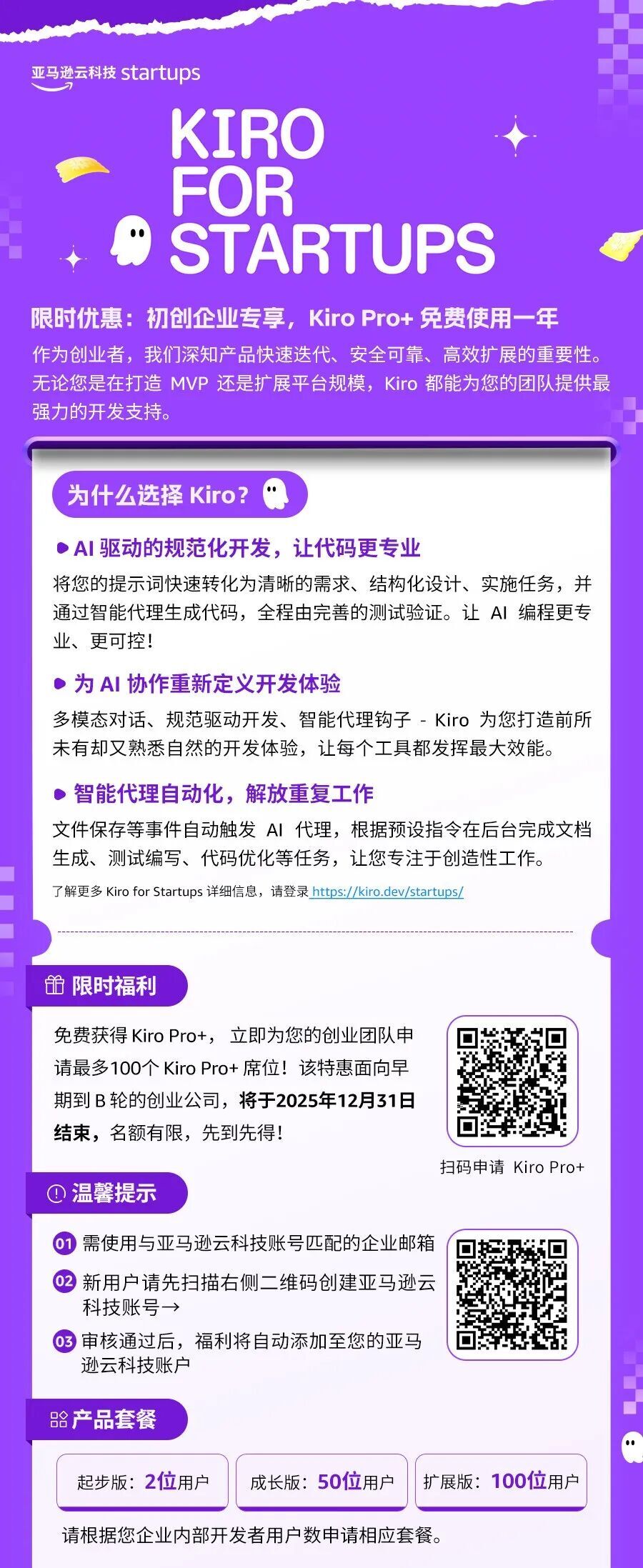 我们致力于让 Kiro 更易于初创企业使用,因此......我们即将发布一个重磅消息。