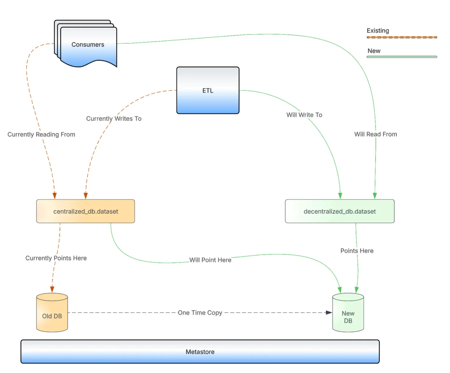 此次迁移采用了基于指针的方案,利用 Hive Metastore 将数据集重定向到新的 HDFS 路径,无需复制 PB 级数据。每个数据集仅需复制一次到去中心化目标位置,随后更新原始指针,确保迁移过程中查询可正常执行。