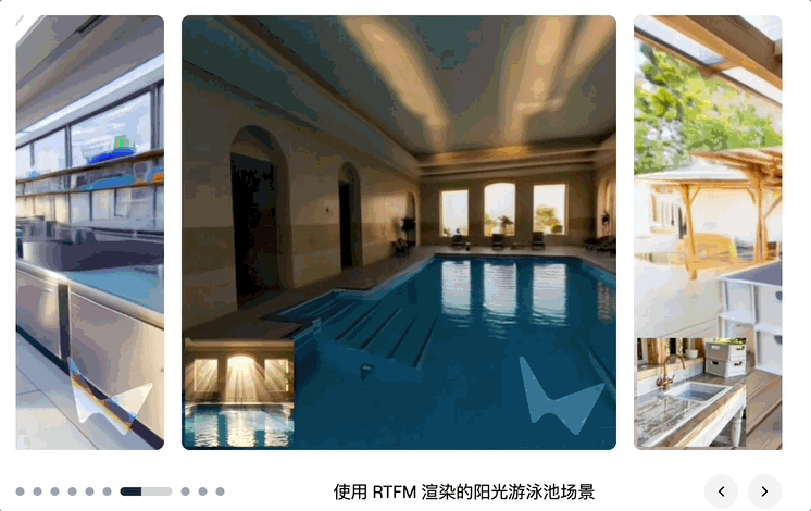另外,RTFM 采用空间记忆机制,通过为每一帧建模其在三维空间中的姿态,能够在保持高效的同时,在大场景中保留住几何结构,实现真正意义上的世界持久性;还采用了上下文切换机制,优化了计算资源的使用,提高了模型的效率。