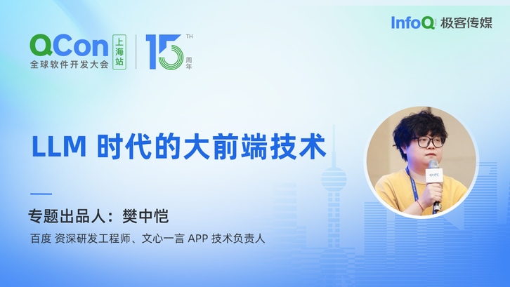 QCon 全球软件开发大会,将于 12 月在上海召开。百度资深研发工程师、文心一言 APP 技术负责人樊中恺将担任「LLM 时代的大前端技术」的专题出品人。在此次专题中,你将了解到 LLM 时代的大前端技术发展趋势与企业级应用开发的机遇和挑战。