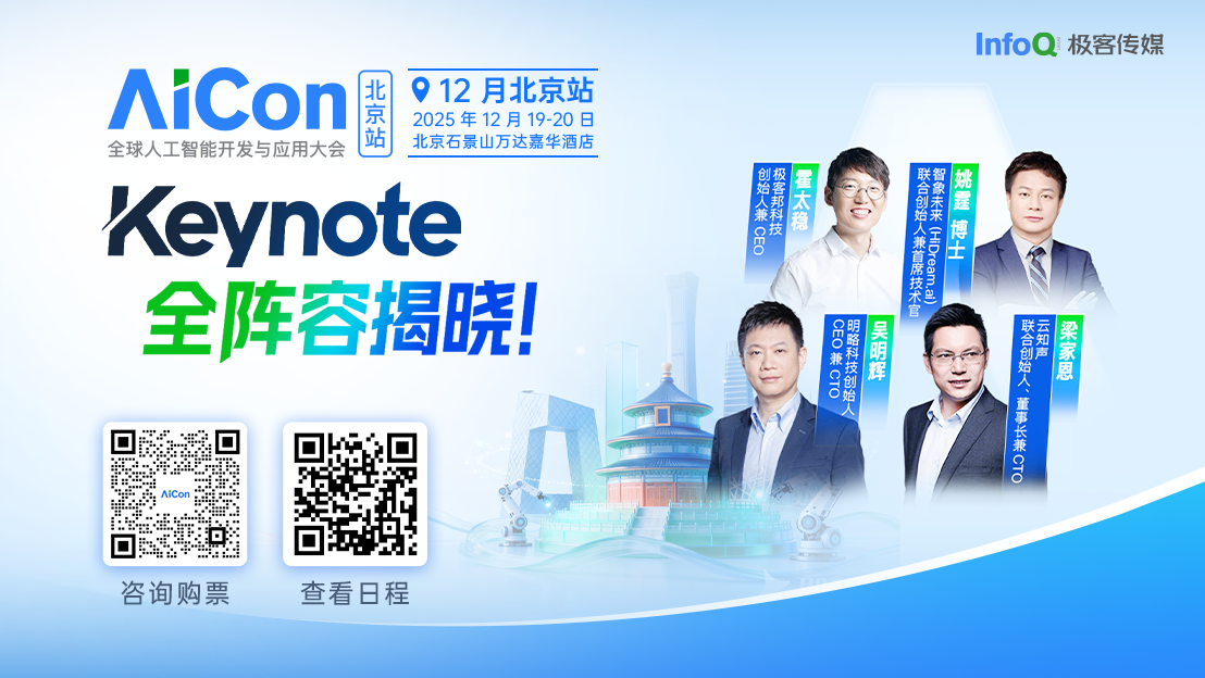 12 月 19-20 日, AICon全球人工智能开发与应用大会收官之站将在北京举办,本次大会 将以 “探索 AI 应用边界” 为主题,聚焦企业级 Agent 落地、上下文工程、AI 产品创新等多个热门方向,围绕企业如何通过大模型提升研发与业务运营效率的实际应用案例,邀请来自阿里、字节、华为、京东、快手、美团等头部企业、大厂以及明星创业公司的专家,带来一线的大模型实践经验和前沿洞察。一起探索 AI 应用的更多可能,发掘 AI 驱动业务增长的新路径!