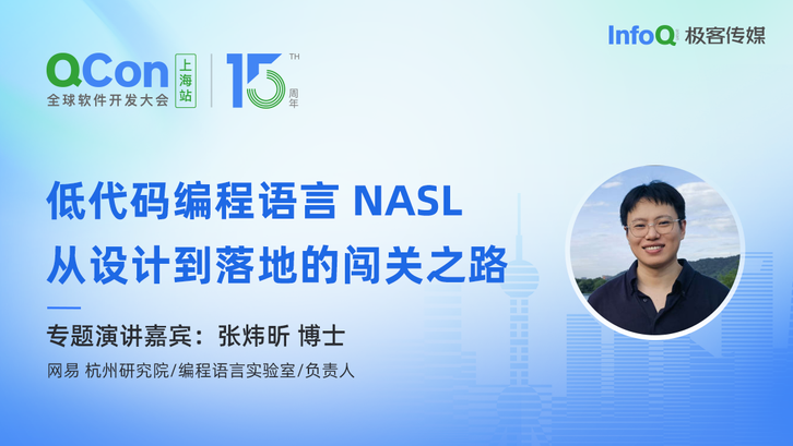 QCon 全球软件开发大会,将于 12 月在上海召开。网易杭州研究院 / 编程语言实验室 / 负责人张炜昕博士将发表题为《低代码编程语言 NASL 从设计到落地的闯关之路》主题分享,探讨 NASL 语言的设计初衷、设计原则、实现挑战、未来展望等方面。