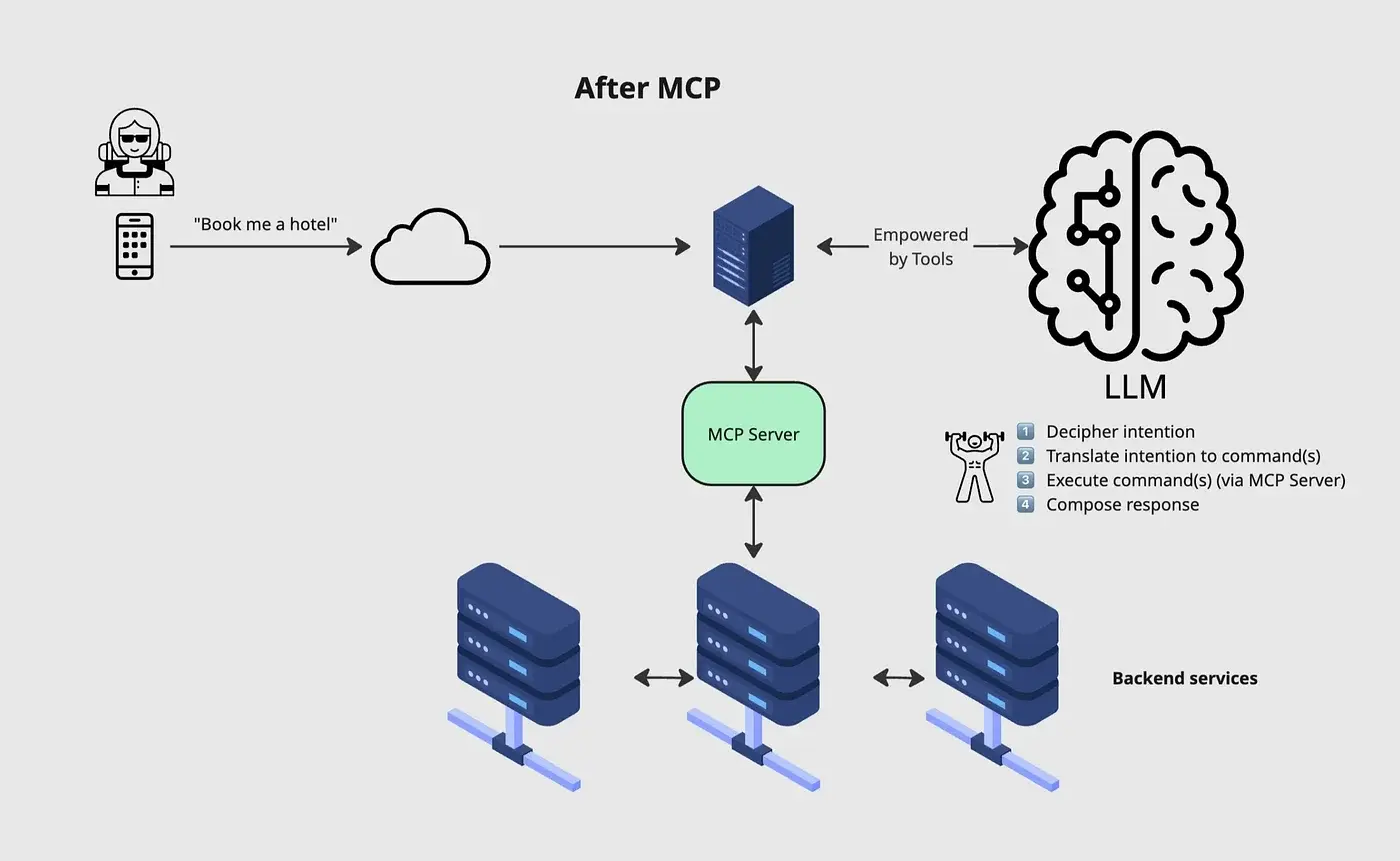 Expedia 集团的高级软件开发架构师 Rafael Torres 最近指出了这种架构演变,解释了 Agent 现在如何直接调用服务并通过像模型上下文协议(MCP)这样的协议编排工作流,而不是为后端生成执行建议。