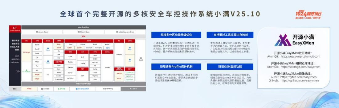 开源小满 EasyXMen 作为全球首个规模化、量产级安全车控操作系统,于 2024 年 10 月 24 日正式上线。本次发布的 V25.10 版本以多核多分区为核心升级,应对车规 MCU 从单核向多核演进的技术趋势。
