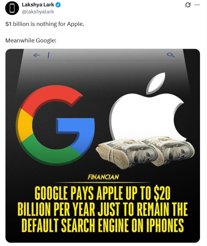 此次 Siri 与 Gemini 的合作同样涉及巨额资金,但这一次资金流向将首次反转。但相比之下,每年 10 亿美元不过是笔零花钱。对此,有网友评价,“苹果付费让谷歌为 Siri 提供技术支持,这反转简直绝了。”还有人调侃道,“为什么不干脆让谷歌支付 190 亿美元成为默认浏览器?”