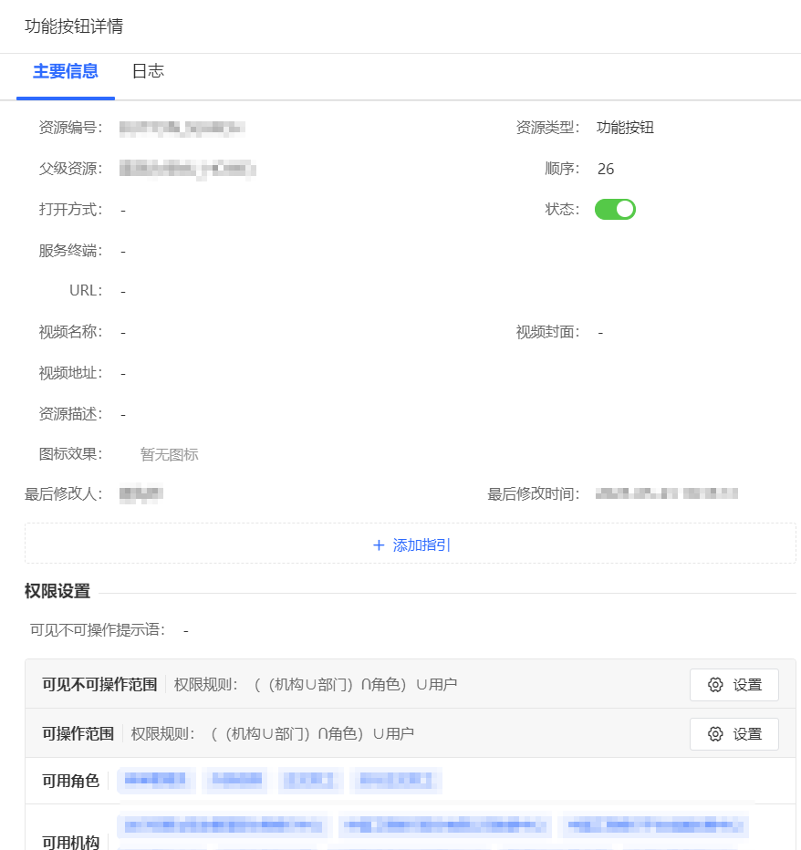 (3)支持按菜单和操作控制权限:在四维联动权限控制的基础上,实现了基于菜单和操作级别的双重权限控制。在菜单级别权限控制方面,系统管理员可以根据组织架构和岗位职责,为不同角色配置可见的菜单项,在操作级别权限控制上,系统进一步细化了每个菜单项下的具体操作权限,支持不可见、可见不可操作和可操作三种权限控制,既能满足粗粒度的功能访问控制,也能实现具体操作按钮级别的精准管控。这种分层权限控制机制符合最小权限原则,避免越权操作。