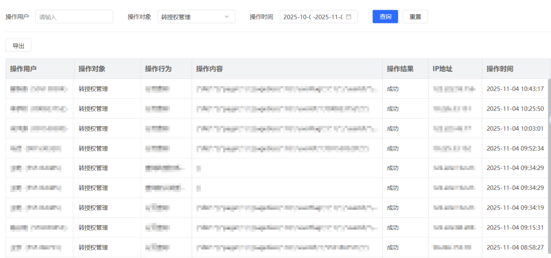 所有授权操作均记录完整日志,包括授权人、被授权人、授权内容、有效期限、处理记录等关键信息,确保授权过程全程可追溯,为授权保驾护航。