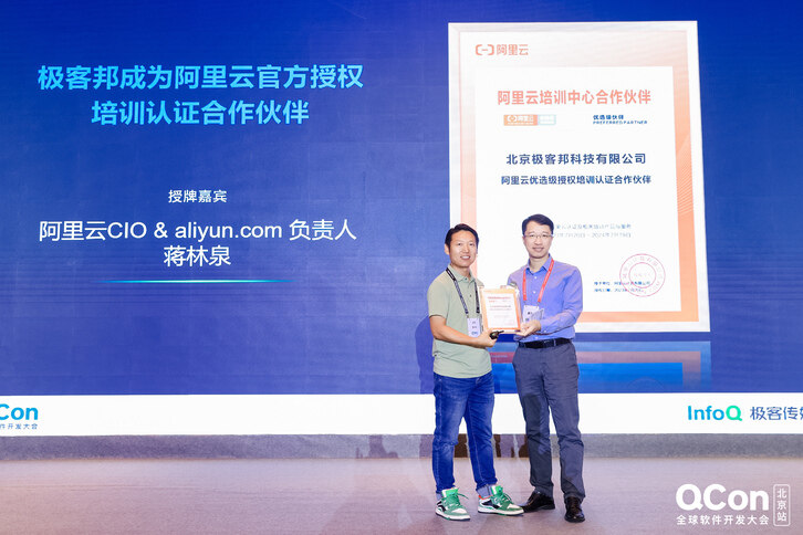 数字化已成为时代的主旋律,而技术人才的培养与发展更显重要。极客邦科技与阿里云认证正式宣发携手合作,共同铸就技术人才的未来。9 月 3 日在备受瞩目的 QCon 全球软件开发大会主会场,举办了本次合作的授牌仪式,阿里云 CIO & aliyun.com 负责人蒋林泉与极客邦科技创始人 & CEO 霍太稳共同见证,强强联手为技术人才的蓬勃发展揭开新的篇章。