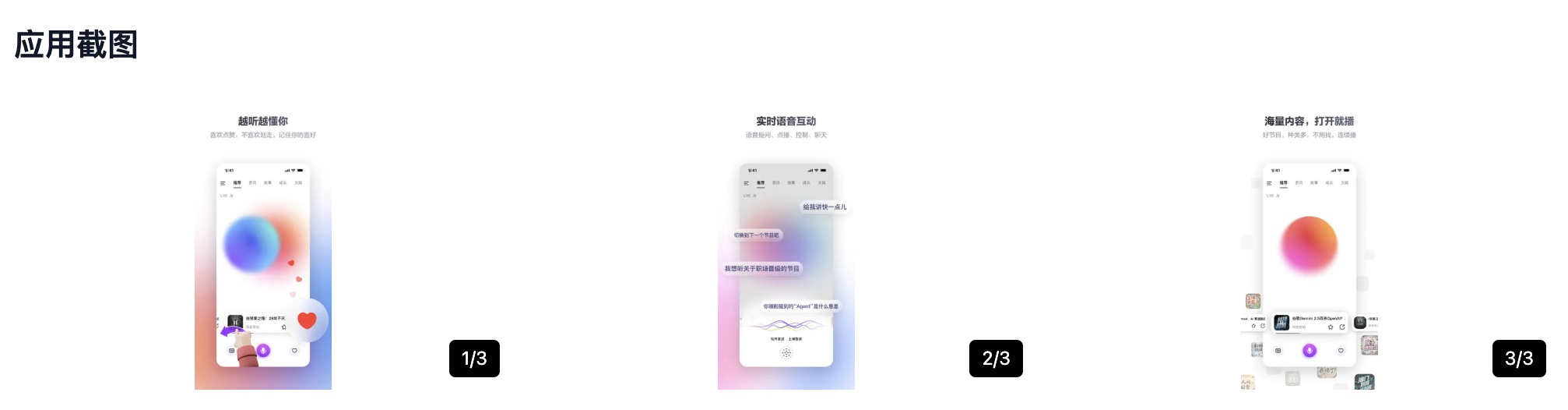 :你的私人 AI 电台,海量内容、打开就播,个性化推荐、越听越懂你,语音聊天、智控点播,多种 AI 主播随心选。