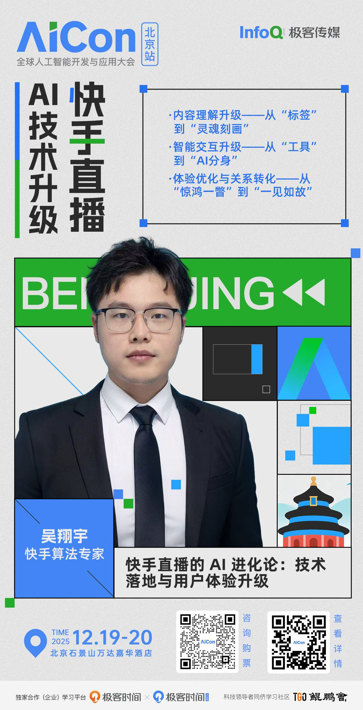 12 月 19-20 日, AICon全球人工智能开发与应用大会收官之站将在北京举办,本次大会 将以 “探索 AI 应用边界” 为主题,聚焦企业级 Agent 落地、上下文工程、AI 产品创新等多个热门方向,围绕企业如何通过大模型提升研发与业务运营效率的实际应用案例,邀请来自阿里、字节、华为、京东、快手、美团等头部企业、大厂以及明星创业公司的专家,带来一线的大模型实践经验和前沿洞察。一起探索 AI 应用的更多可能,发掘 AI 驱动业务增长的新路径!