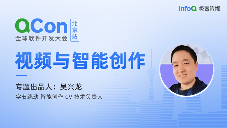 9 月 3 日 - 5 日,在 QCon 全球软件开发大会(北京站),字节跳动智能创作 CV 技术负责人吴兴龙将担任「视频与智能创作」的专题出品人。在此次专题中,你将了解到音视频体验优化的各项手段、智能创作工具的建设,以及它如何为视频生态的繁荣而赋能。
