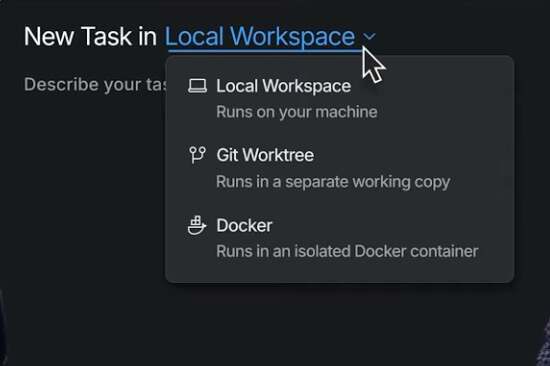 其设计围绕一个核心概念:Task。开发者只需要在真实代码上下文中定义一个任务,Air 会把这个任务交给 AI Agent 执行。任务可以运行在本地 workspace、Git worktree、Docker 容器中,未来版本还会支持云端容器。Air 内置了代码编辑器,用户可以在不同任务之间切换,并对 Agent 生成的结果进行审查和批准。