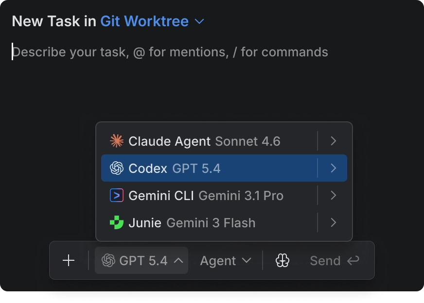 基于这一判断,他们现在终于拿出了自己的“全新”工具。在其设想中,未来的 IDE 更像一个 Agent 调度中心。因此,Air 被定位为一个 Agent 调度与编排平台(Agent orchestration platform),支持接入并调度多个 AI Agent,包括 OpenAI Codex、Anthropic Claude Agent、Google Gemini CLI,以及 JetBrains 自家的 Junie。