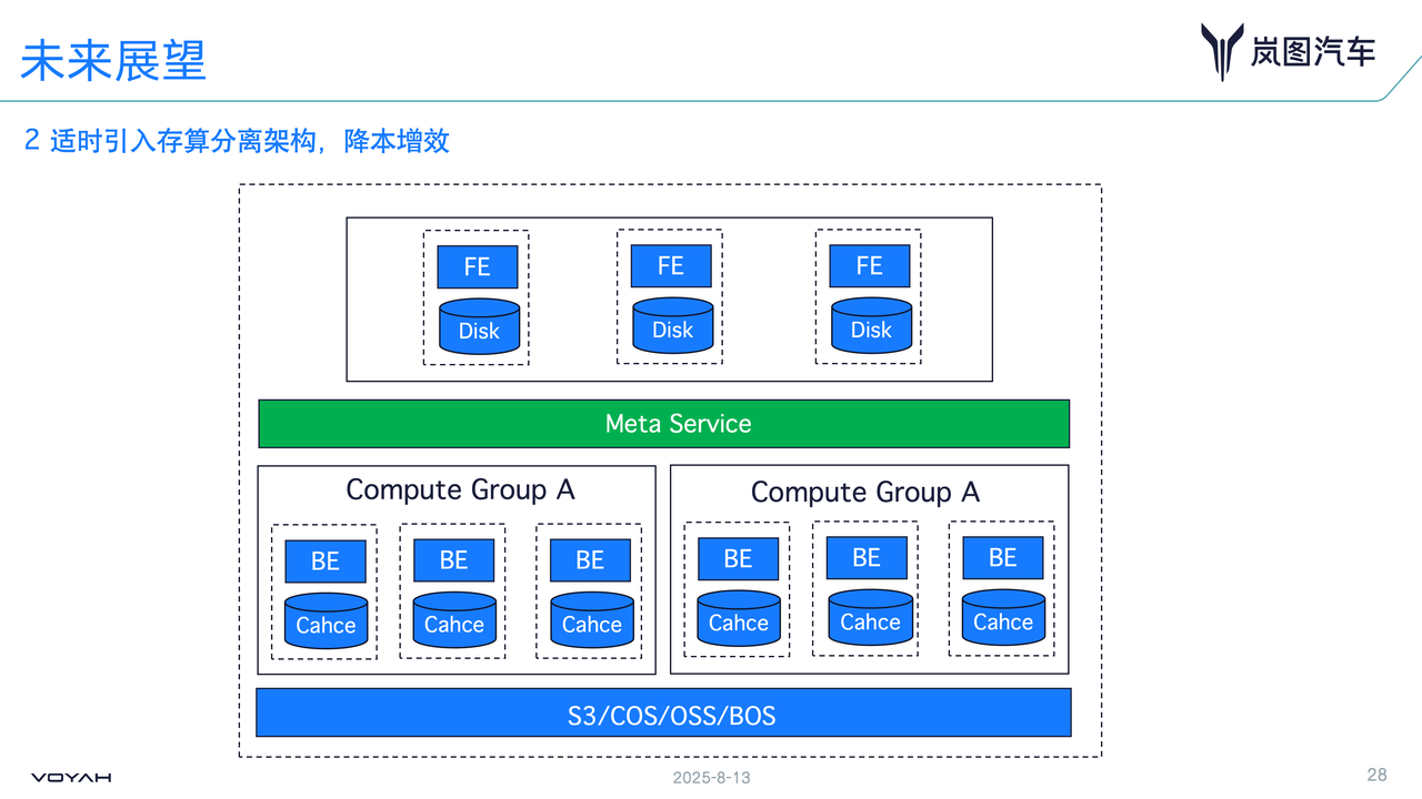 岚图汽车通过采用 Apache Doris,对实时数据仓库基础设施完成了现代化改造和转型。通过智能数据分层不仅降低了 60% 的储存成本,还提升了应对多样化和高要求工作负载的查询性能,展现了 Apache Doris 在互联汽车数据平台所特有的大规模、高并发和实时环境中所具备的能力和优势。岚图汽车的未来规划与行业更广泛的趋势相符,向更集成的湖仓一体数据平台、更灵活可扩展的存算分离架构发展。