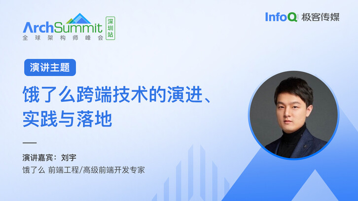 7 月 21 日 - 22 日, 在 ArchSummit 全球架构师峰会(深圳站),饿了么前端工程高级前端开发专家刘宇,将于会上发表题为《饿了么跨端技术的演进、实践与落地》的演讲,重点介绍如何基于小程序视角构建跨端能力与落地实践经验,希望能给大家带来新的思路。