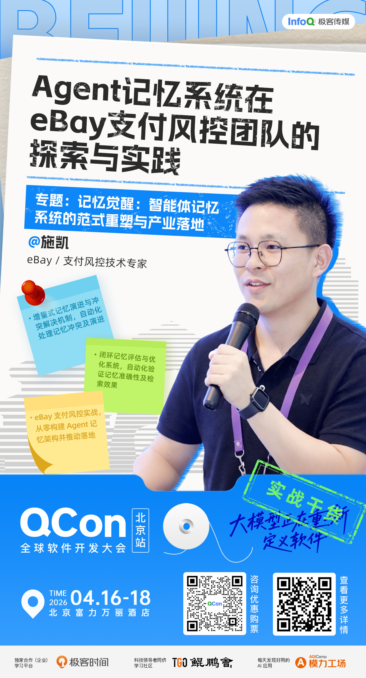4 月 16 日-4 月 18 日,QCon 全球软件开发大会将在北京举办。本届大会锚定 Agentic AI 时代的软件工程重塑,聚焦 Agentic AI、多智能体协作、算力优化、技术债治理、多模态和 AI 原生基础设施等前沿话题,邀请来自腾讯、阿里、百度、华为、蚂蚁、小米、网易等企业技术专家,带来百余项真实落地案例,系统性分享前沿洞察与实战干货,以技术共创探索 AI 落地新路径。
