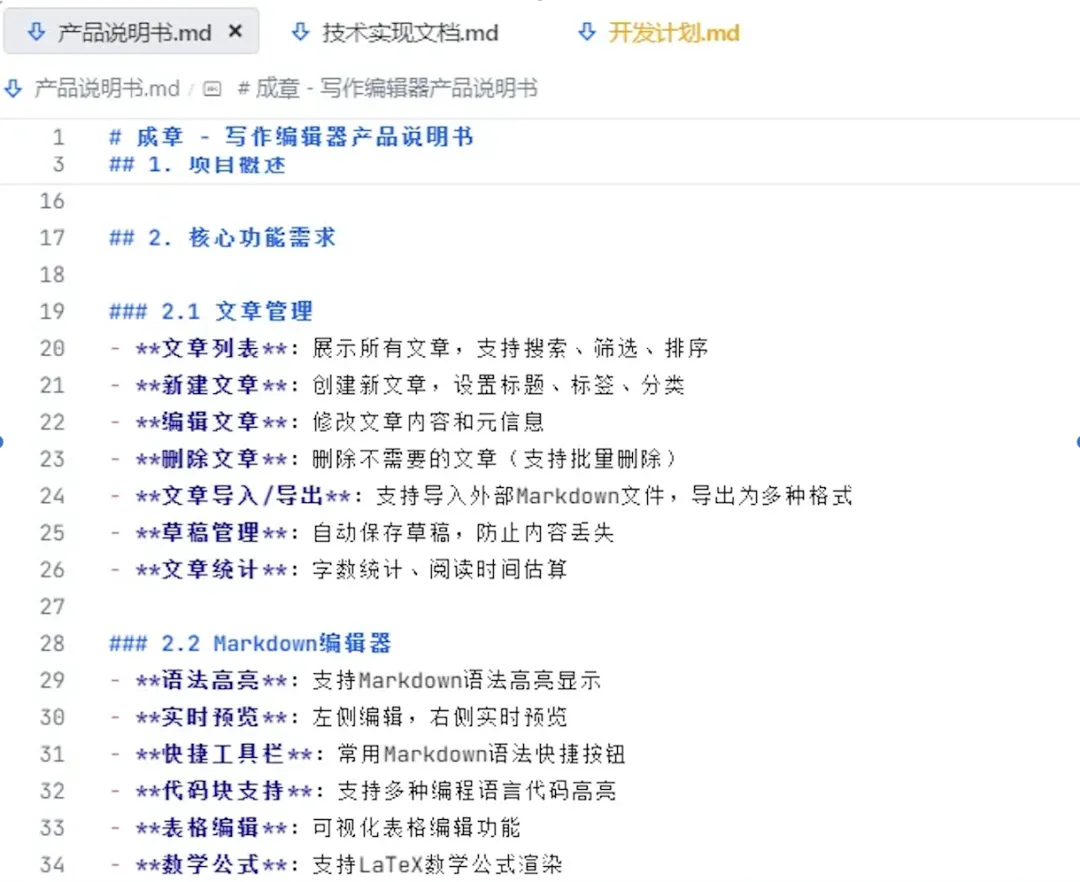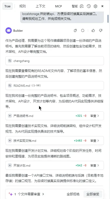 TRAE 直接根据我们简单的目标生成了 4 个文档。