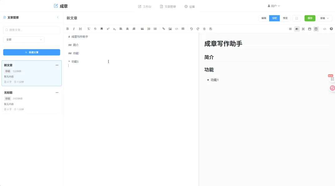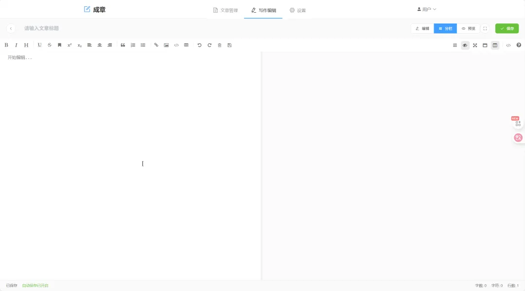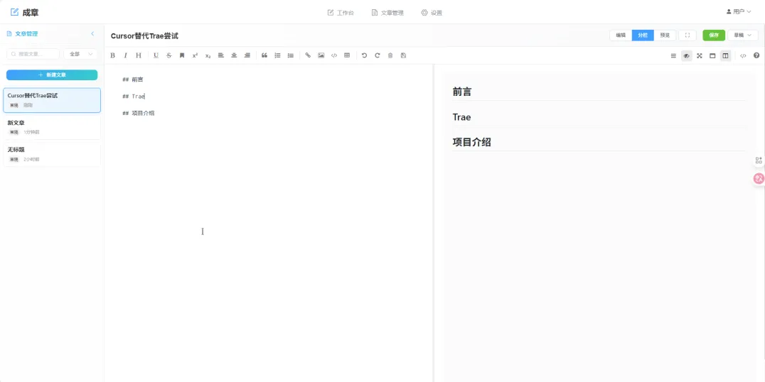 甚至完善了“文章状态管理”、“编辑模式切换”、“自动保存功能”功能。