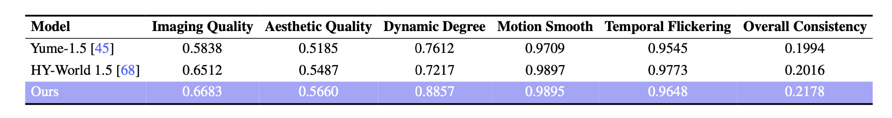 在 VBench 测试中,LingBot-World 全面领先于 Yume-1.5 和 HY World-1.5 等先进开源模型,证明了自己不仅是一个视频生成器,更是一个强大的交互式模拟器。通过接收用户输入的动作指令,它能够生成高度动态且物理一致的视觉反馈,保持在高动态度下的整体一致性,使视频内容在长时间段内始终与最初的提示保持一致。