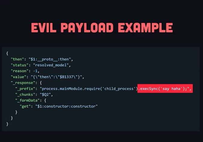 漏洞就出在这里。攻击者可以伪造一个特殊的 HTTP 请求,把“看起来像正常 Flight 数据”的内容发送到任何 React Server Function 端点。React 在解析这些数据时,会误以为它们是合法的内部对象,并按正常流程继续处理。结果就是,攻击者构造的数据被当成了代码执行路径的一部分,最终在服务器上直接触发了远程代码执行。