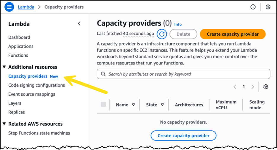 在底层,AWS Lambda 托管实例通过容量提供者(Capacity Providers)对 EC2 实例进行组织,这些提供者基于特定的计算特性(如实例类型和扩缩容参数)进行配置,可通过 Lambda 控制台或基础设施即代码(IaC)工具完成设置。