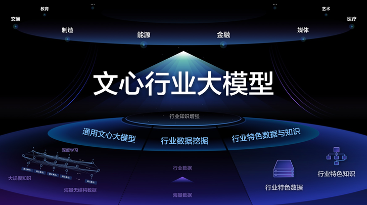 百度智能云的核心理念也正是这四层架构,这使得百度智能云成为目前国内唯一训练出生成式大语言模型的云,这个大语言模型就是文心一言。与此同时,文心一言的服务也会通过百度智能云对外提供。