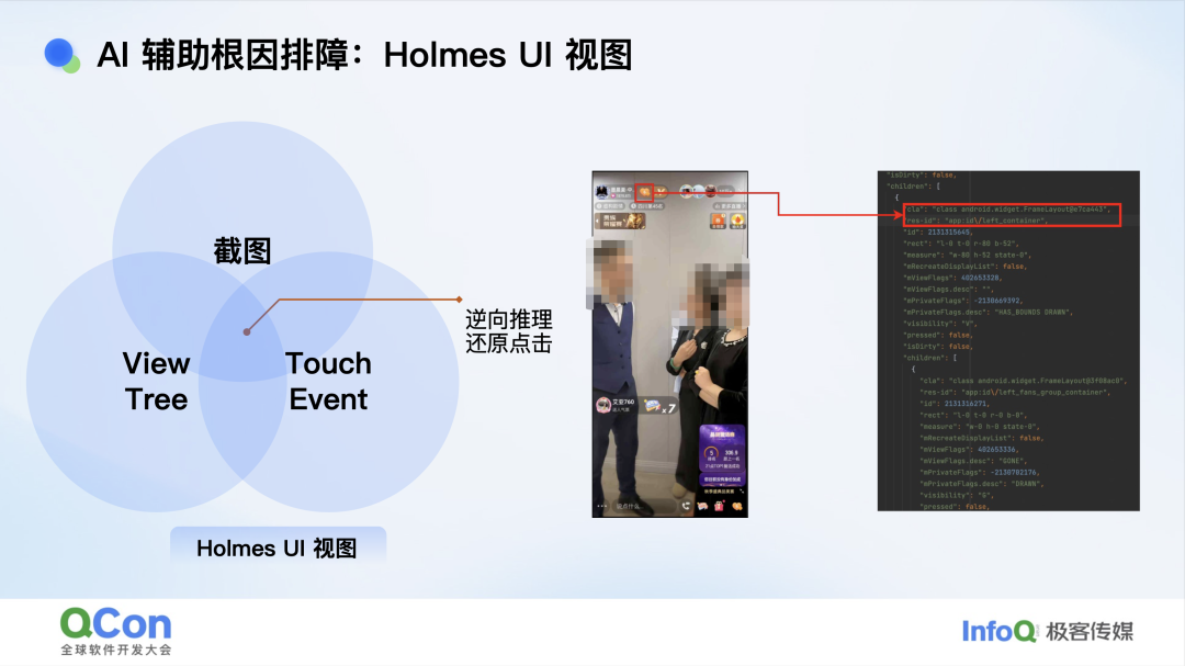 具体落地时,Holmes 的 UI 视图采集必须“刚刚好”:信息不能多也不能少,多了干扰判断,少了缺关键线索;同时要对系统 UI 框架足够熟悉,才能在不显著损耗性能的前提下,把 View 层级、布局参数、事件链路一次性抓全。