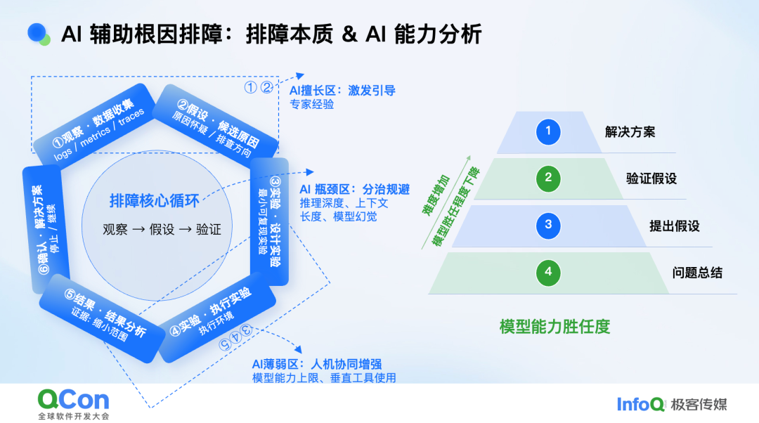 为什么修一个 Bug 会如此耗时?我把这些年的踩坑经历抽象成一句话:排障本质上是一场科学推理实验,本质上是演绎推理、归纳推理、溯因推理、类比推理等推理方法论的组合。 我发现 MIT 有一门课也持同样观点——先观察现象、收集数据,再提出假设,用排除法迭代,直到去伪存真。AI 能否胜任这场实验?基于此思路,我把它拆成“摸高”与“短板”两条线。