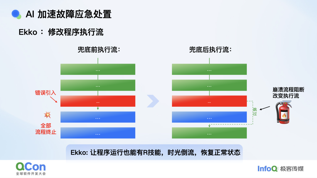 于是,我们问自己:有没有一种工具,能在崩溃发生的瞬间直接“兜底”,像《英雄联盟》里的 Ekko 开大招——时光倒流,让程序回到正常状态?我们内部也把这个工具命名为 Ekko。它的思路很朴素:无论异常由谁引入、因何触发,先跳过错误,保证用户不崩。当然,实现起来并不简单。