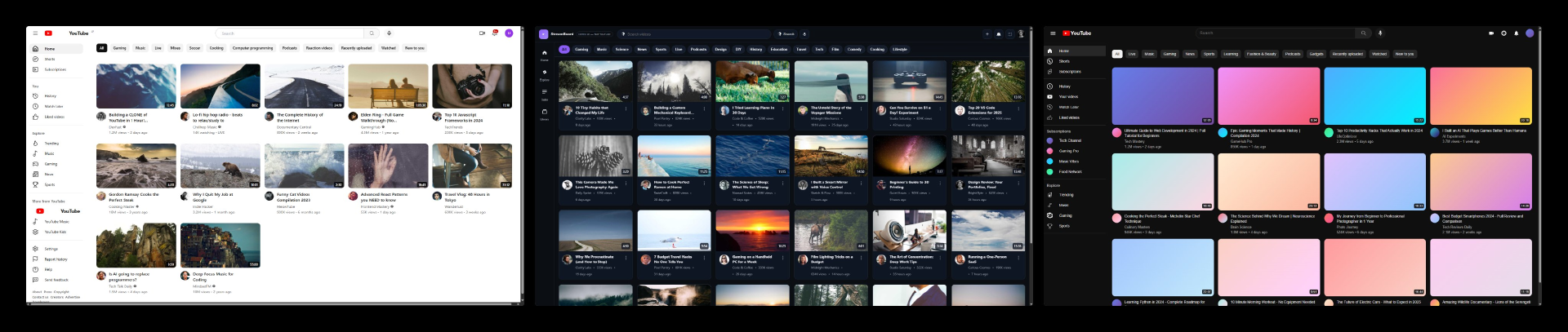 在一项对比测试中,该网友让 Gemini 3 (Lithium)、GPT-5 High 和 Sonnet 4.5 Thinking (也是图片顺序)三大模型同时挑战重现 Twitter、Discord 及 YouTube 的界面,结果在与 GPT-5 和 Sonnet 4.5 的横向对比中尤为突出。