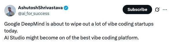 有网友认为,此举可能重塑“氛围编程”赛道:不少初创产品将面临正面冲击,AI Studio 也有望成为最具竞争力的平台之一。而且,相较于专注 “vibe coding” 的竞品(如 Anthropic Claude Code、OpenAI Codex,这些产品对技术背景要求颇高),此次升级在面向普通用户的易用性上更具吸引力,降低了上手门槛与对专业背景的依赖。