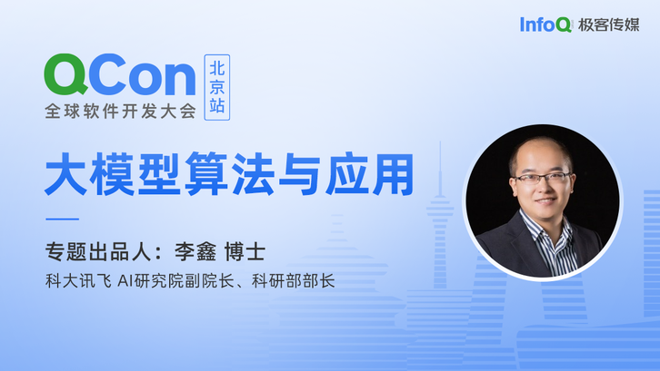 9 月 3 日 - 5 日,在 QCon 全球软件开发大会(北京站),科大讯飞 AI 研究院副院长、科研部部长李鑫博士将担任「大模型算法与应用」的专题出品人。在此次专题中,你将了解到大模型催生出的新业务,以及大模型与已有业务的结合。