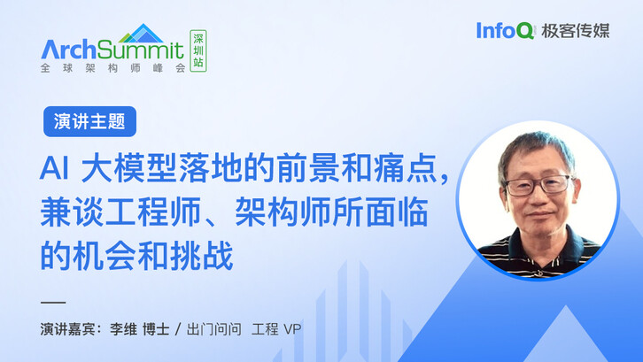 7 月 21 日 - 22 日, 在 ArchSummit 全球架构师峰会(深圳站),出门问问工程 VP 李维博士,将于会上发表题为《AI 大模型落地的前景和痛点,兼谈工程师、架构师所面临的机会和挑战》的演讲,详细阐述 IT 生态大模型(LLM)的洗牌和洗礼,直击架构师工程师面临的问题和挑战。