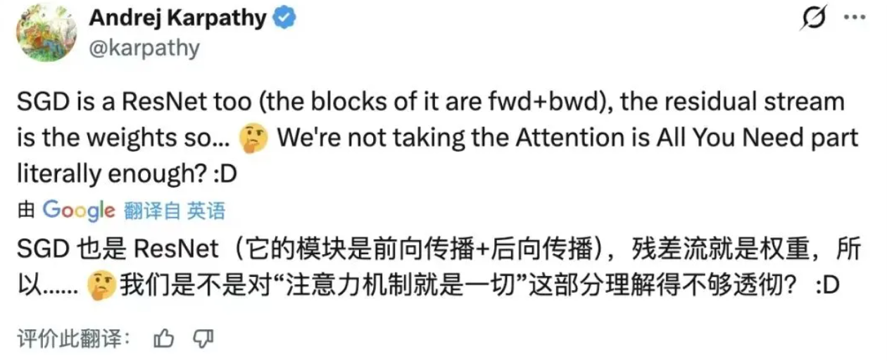 Kimi 的新设计给了 OpenAI 大神 Andrej Karpathy 不少启发,他忍不住深思,“注意力机制”是不是可以运用到更多的地方去?