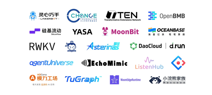 这里汇聚了众多行业知名 AI 企业和开源项目,涵盖数据库、开发框架、AI 模型、AI 应用、具身智能等多个领域。