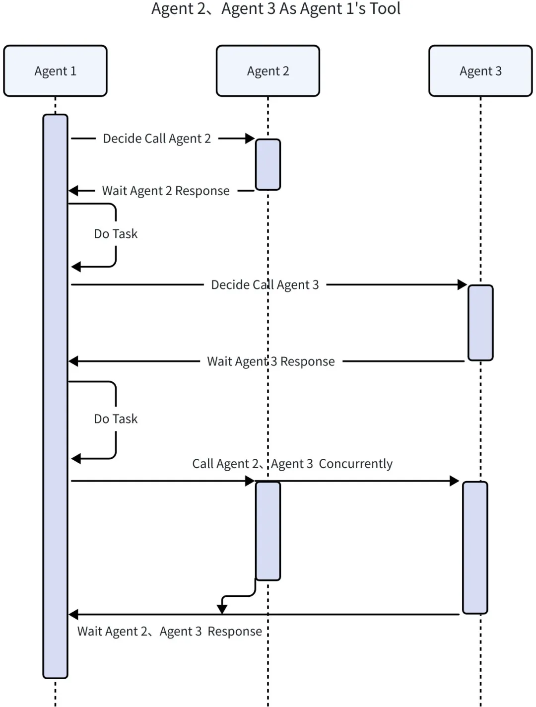 - 显式调用(ToolCall):将 Agent 视为工具进行调用。适用于 Agent 运行仅需要明确清晰的参数而非完整运行上下文的场景,常结合 ChatModelAgent,作为工具运行后将结果返回给 ChatModel 继续处理。除此之外,ToolCall 同样支持调用符合工具接口构造的、不含 Agent 的普通工具。