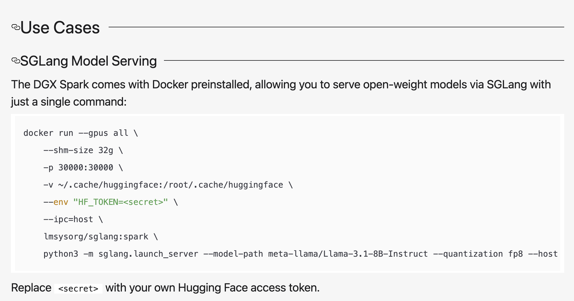 第一步:是测试 DGX Spark 能否像云服务器一样“一键上线模型服务”?这里的重点不在于模型能不能运行,而在于 DGX Spark 是否可以像云端一样,以服务形式常驻运行。
