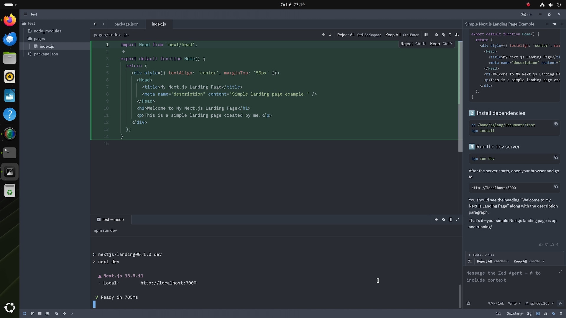 最后:测试者引入了 Zed 编辑器 + Ollama,IDE 可以自动识别 DGX Spark 提供的模型服务,并实现代码自动补全、上下文对话式重构等功能。