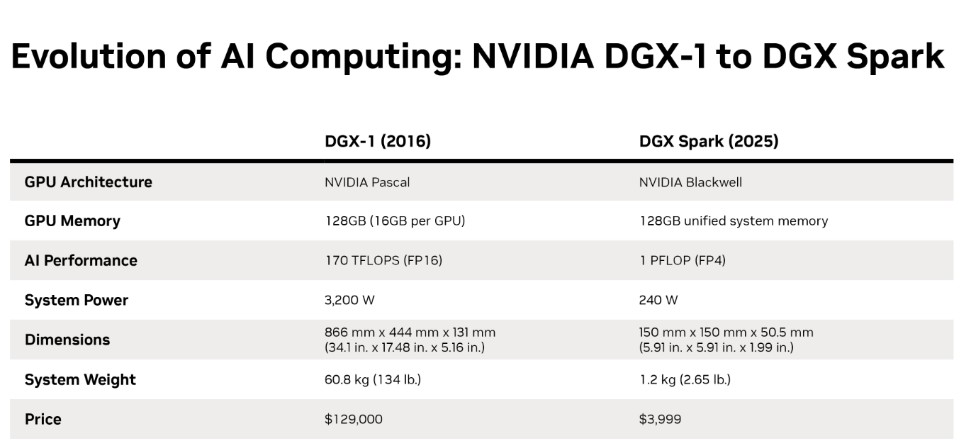 据英伟达消息,DGX Spark 的本质,是把原本只存在于数据中心的 DGX 超级计算架构,浓缩成“一台能放在桌上的个人 AI 超级计算机”。
