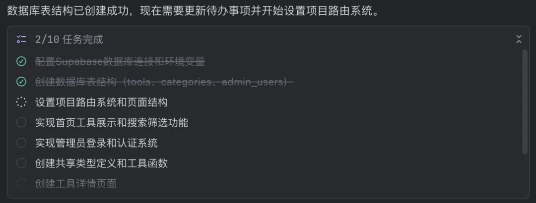TRAE SOLO 会根据待办事项列表来逐步完成开发步骤。