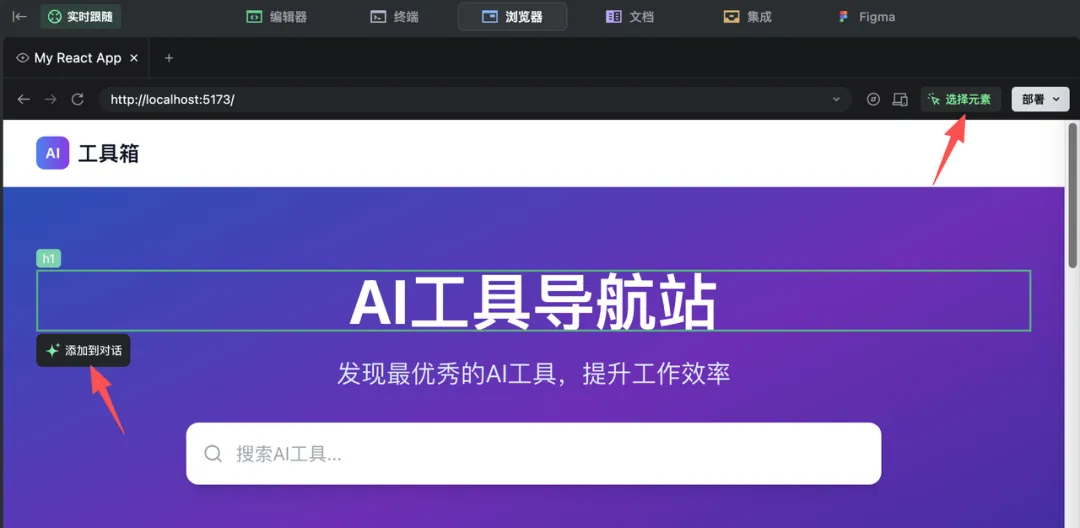 再比如,想对画面中的某个元素进行修改,可以直接选择这个元素,「添加到对话」进行针对性的修改。