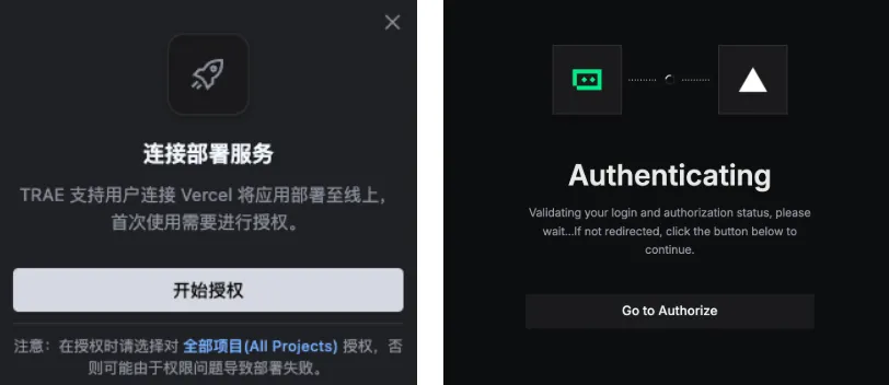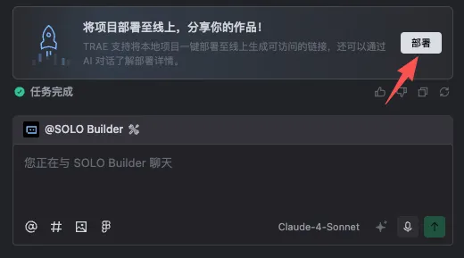 而 TRAE SOLO 支持将开发好的项目一键部署上线。