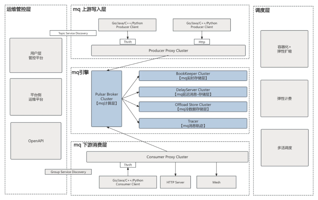 在实际落地过程中,团队对 Pulsar 进行了深度优化。针对计费场景常见的延迟消息需求,开发了 Delay Topic 和 Time wheel 两种模式,支撑超时重试和营销活动场景。引入二级 Tag 机制,在不增加 Topic 管理负担的前提下,实现了按业务代码过滤消息的能力。建设了完善的控制台系统,实现对消息全生命周期的追踪管理,包括消息内容查询、生产者溯源和消费状态监控。构建了多维监控告警体系,通过积压告警、延迟告警和失败告警等机制,确保系统异常能够秒级发现并及时处理。