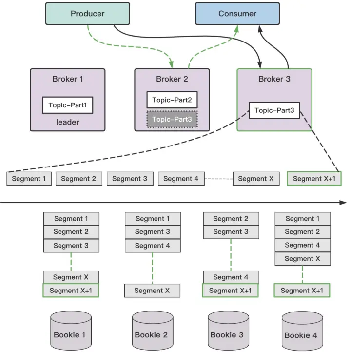 在全面评估后,滴滴大数据团队选择 Apache Pulsar 作为新一代消息系统。Pulsar 的存算分离架构通过 BookKeeper 实现顺序刷盘,彻底解决了随机写入导致的 IO 瓶颈问题;其多级缓存机制(包括 Broker 堆外缓存和 Bookie 读写缓存)有效实现了 IO 隔离,避免了读写相互影响;Bundle 机制将海量分区映射到有限哈希环上,大幅降低了元数据管理和 Rebalance 压力;节点对等和无状态设计使得扩缩容变得简单高效,支持高峰期和故障期间的快速扩容。这些特性使 Pulsar 成为解决滴滴大数据运维痛点的理想选择。