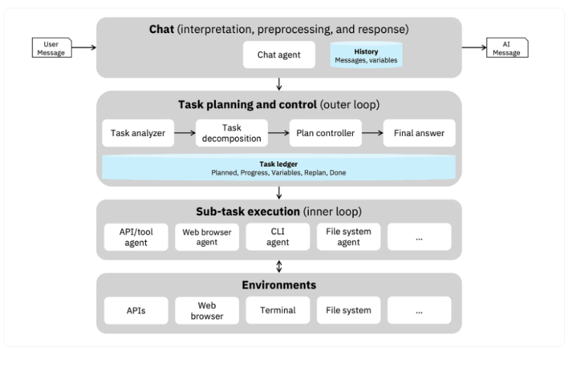 在架构层面,CUGA 结合了结构化规划和受控执行。用户意图首先被解释为目标,然后分解为通过动态任务账本跟踪的子任务。在中间步骤失败时,这个账本会重新规划并恢复执行。有专门的代理(如 API 代理)操作内部推理循环,在安全沙箱中执行动作之前生成伪代码。工具使用通过一个增强型注册表。该注册表能够理解的工具能力超过了基本的 MCP 描述符,可以实现更紧密的协调并减少幻觉。