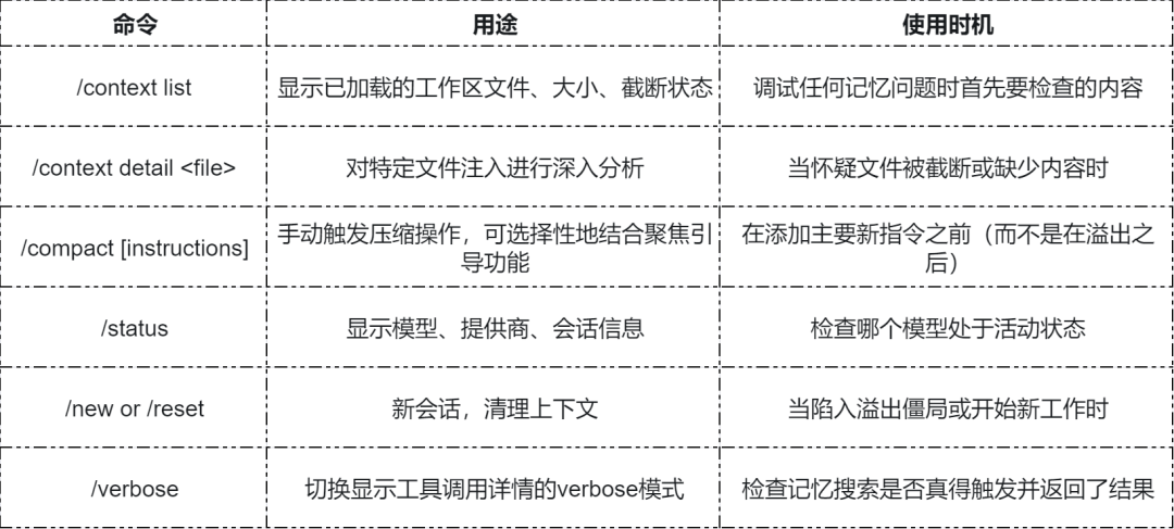注意:如果等到“上下文溢出”,则可能会陷入 /compact 也失败的境地。上下文太满了,即使是压缩请求也会溢出。那时,你唯一的选择是 /new 或 CLI 恢复。不要等待,主动压缩。