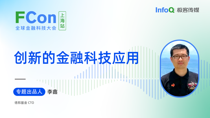 FCon 全球金融科技大会,将于 11 月在上海召开。德邦基金 CTO 李鑫将担任「创新的金融科技应用」的专题出品人。在此次专题中,你将了解到技术如何加速金融行业的效率,为它赋能,最终为用户带来更好的金融产品的。